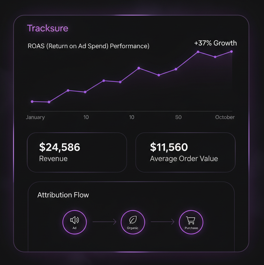 TrackSure fixes this by giving every conversion the credit it deserves. Our advanced attribution models show the complete customer journey, from the very first click to the final purchase. Instead of relying on outdated first- or last-click reporting, you get a clear, data-driven view of how each ad, channel, and campaign contributes to revenue.